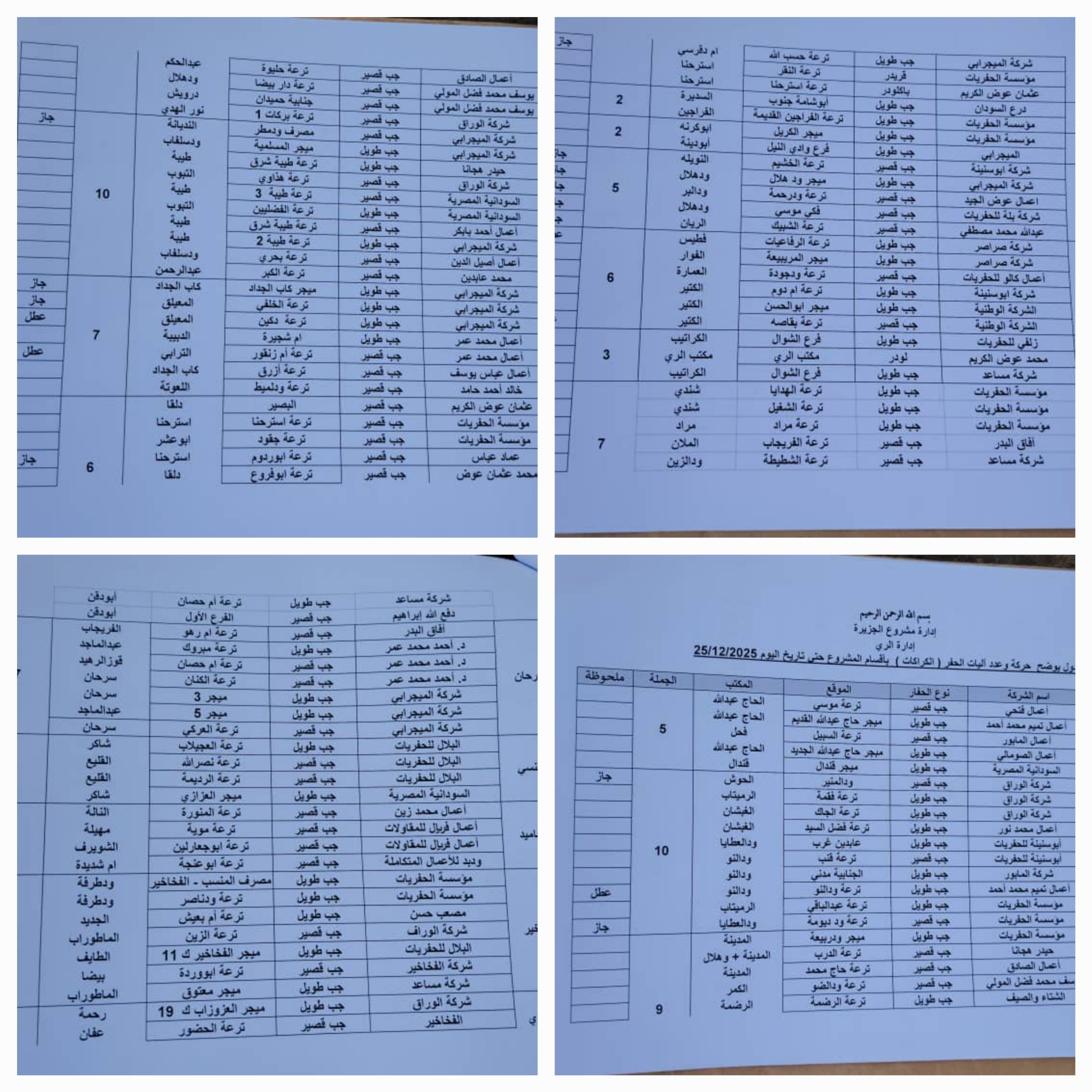 ومن جانبه أكد المهندس محمد عثمان العوض مدير إدارة الري بمشروع الجزيرة إن عدد الآليات العامله حتي اليوم بمشروع الجزيرة تبلغ (108) كراكه بنوعيها (الجيب الطويل والقصير)مشيرا إلي أن كميات الجازولين ألتي تم توزيعها للكراكات تقدر بحوالي (42) الف و(660) جالون جازولين من جمله الاحتياج المطلوب والذي يقدر بحوالي (57) الف و(340) جالون جازولين…..