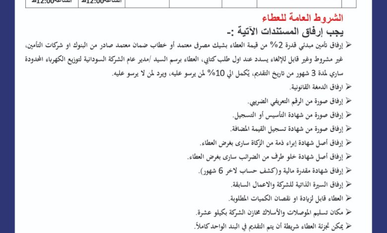 اعلان مهم….الشركة السودانية لتوزيع الكهرباء المحدودة …اعلان عطاء عام