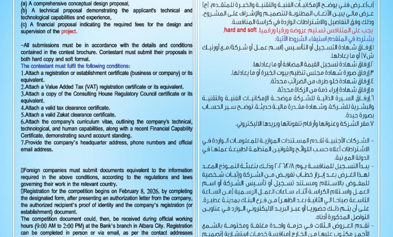 اعلان… بنك السودان اامركزي…منافسة تصميم واشراف مشروع المبني الجديد لبنك السودان المركزي فرع عطبرة