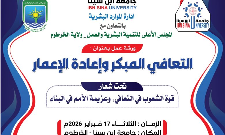 بالتعاون مع المجلس الاعلى للتنمية البشرية…جامعة ابن سينا تطلق ورشة التعافي الوطني المبكر الخرطوم: التميز نيوز اقامت…